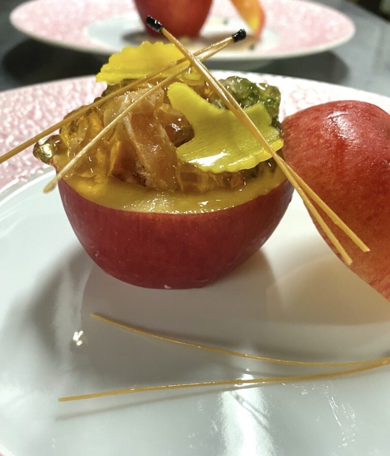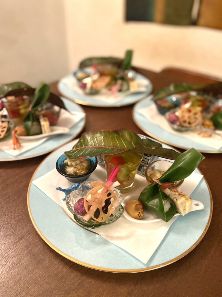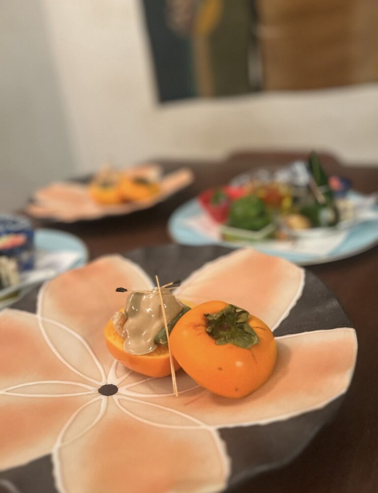 今の季節は先つけに果物の柿や林檎を使った一品
