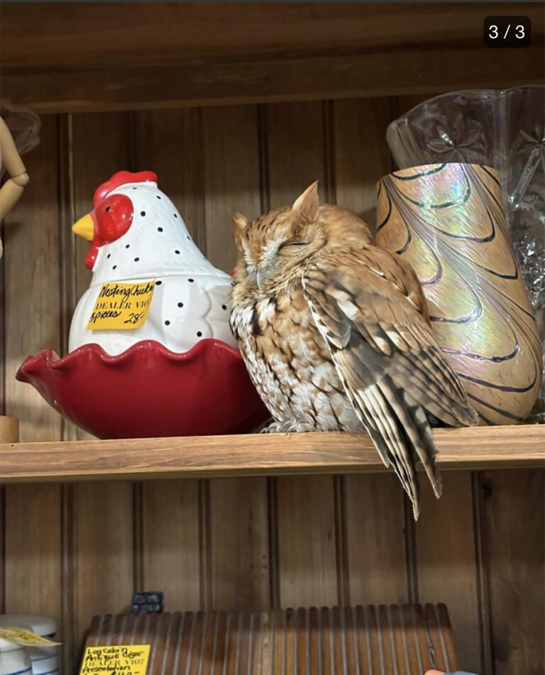 「ニューヨークのアンティークショップで鶏の置物の隣に本物のフクロウが寄り添い居眠りしていた」というなんともまぁ微笑ましいblogを見つけた