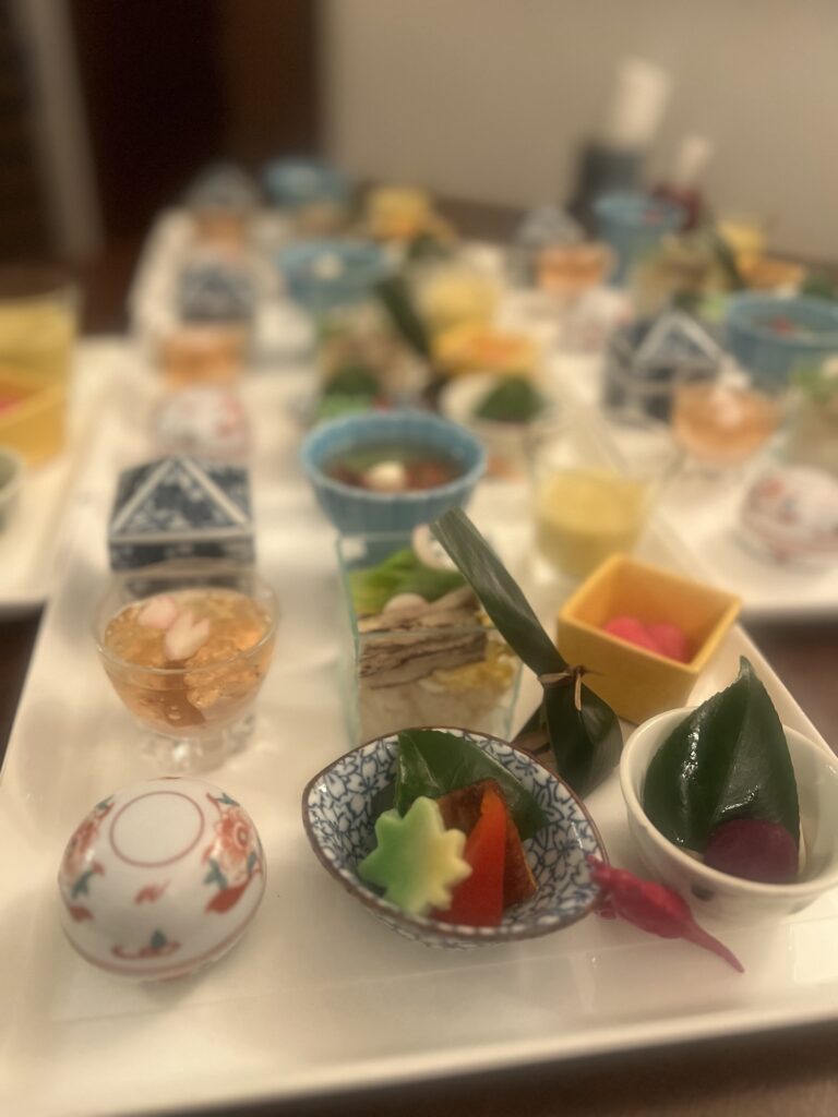 スナップエンドウのソースと黒にんじんのソースの先付けは